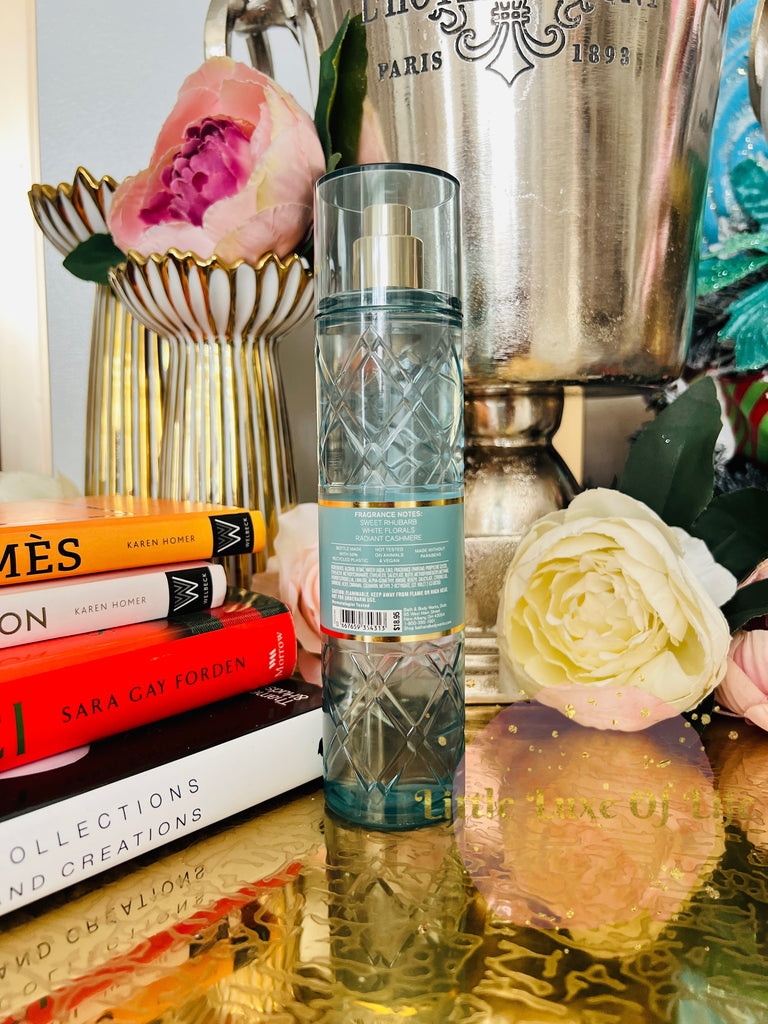 Fragrance notes: sweet rhubarb, white florals and radiant cashmere.